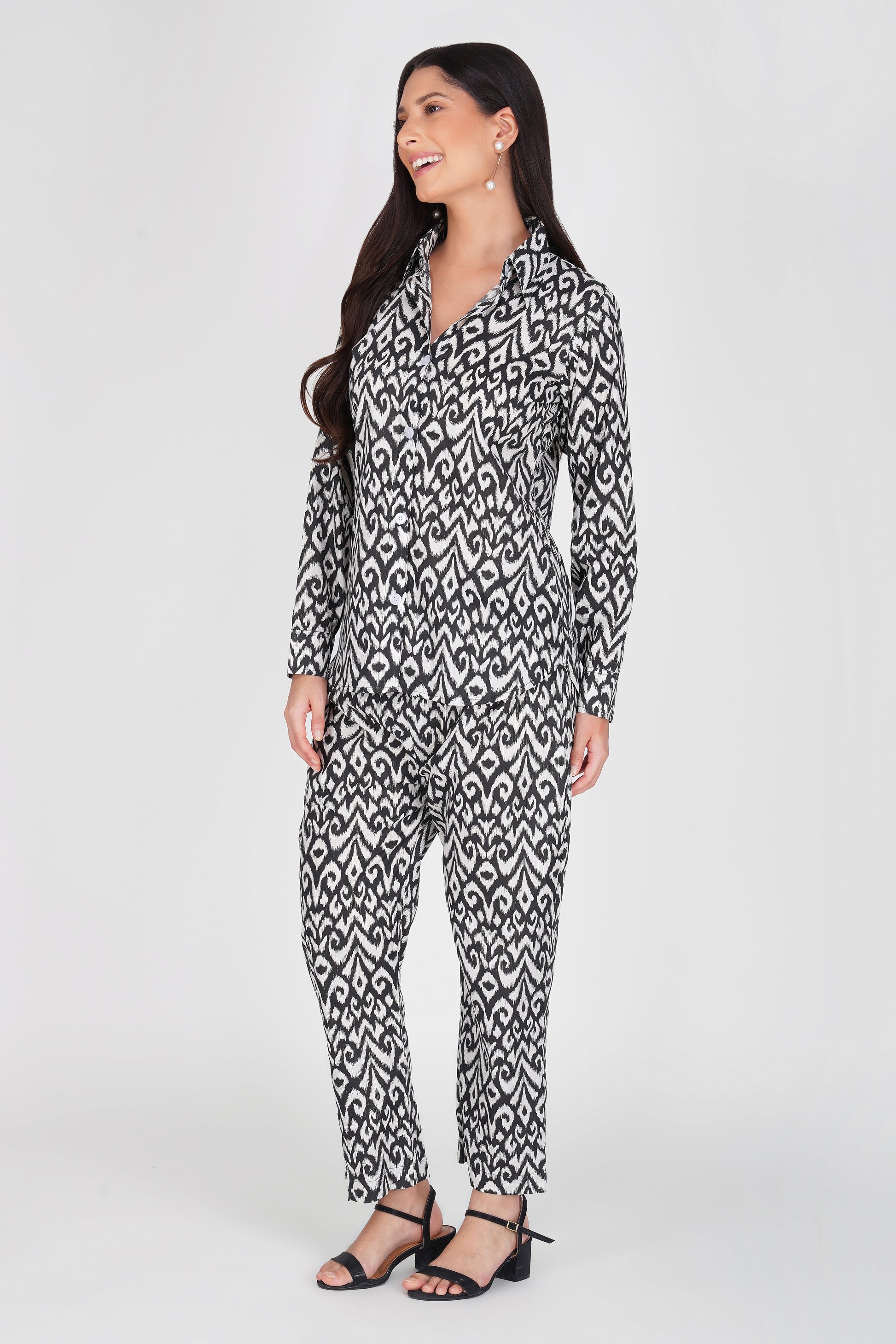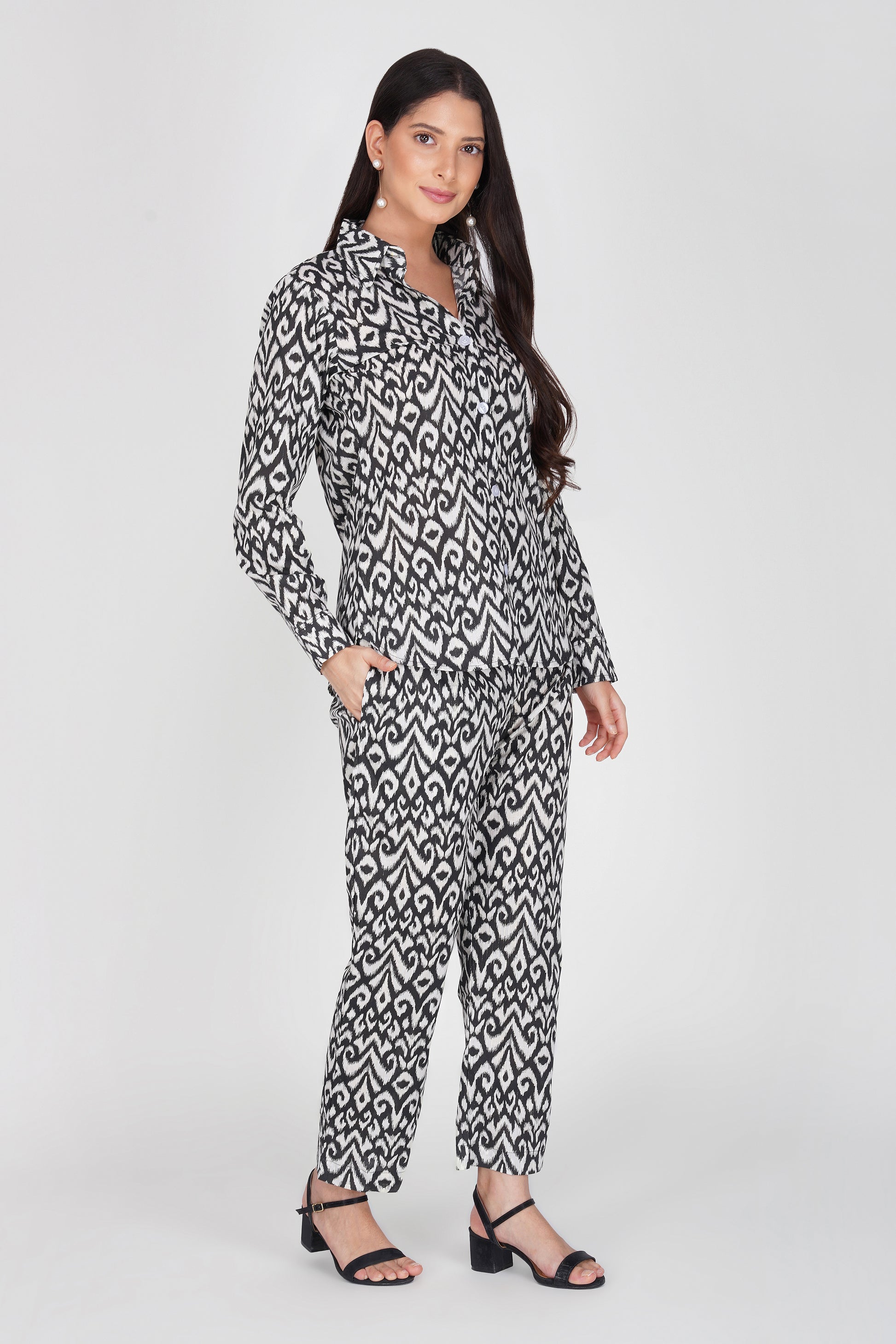 Command attention without saying a word in this Black & White Ikat Co-ord Set – a masterpiece of effortless style and everyday comfort. The timeless monochrome ikat print is bold yet versatile, making it the perfect pick for women who love looking put-together with minimal effort.